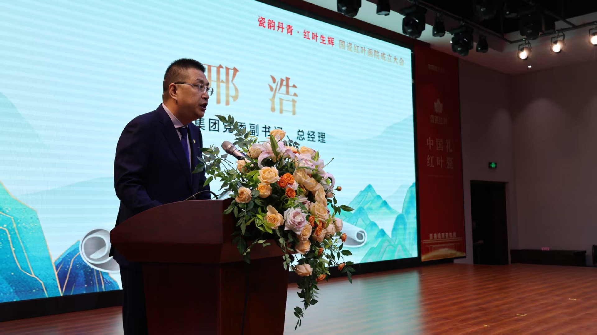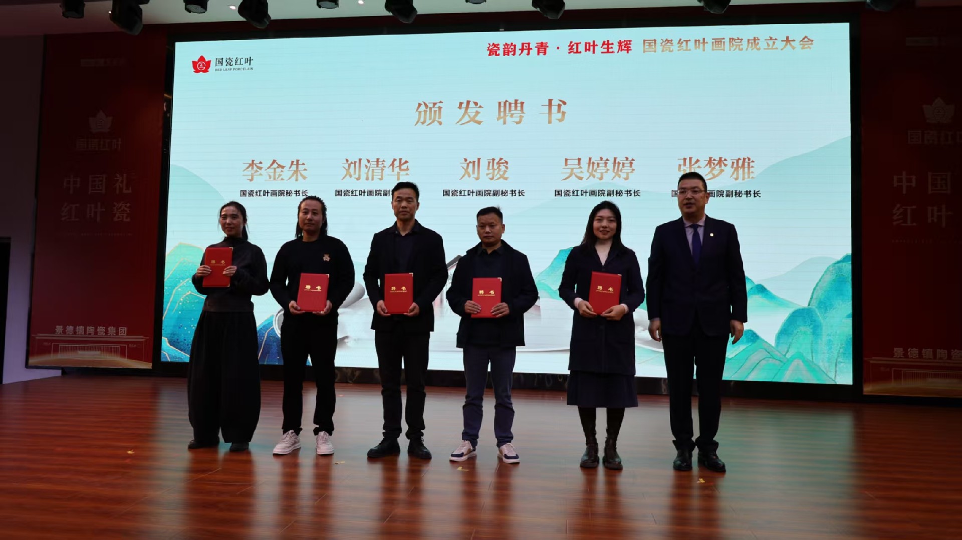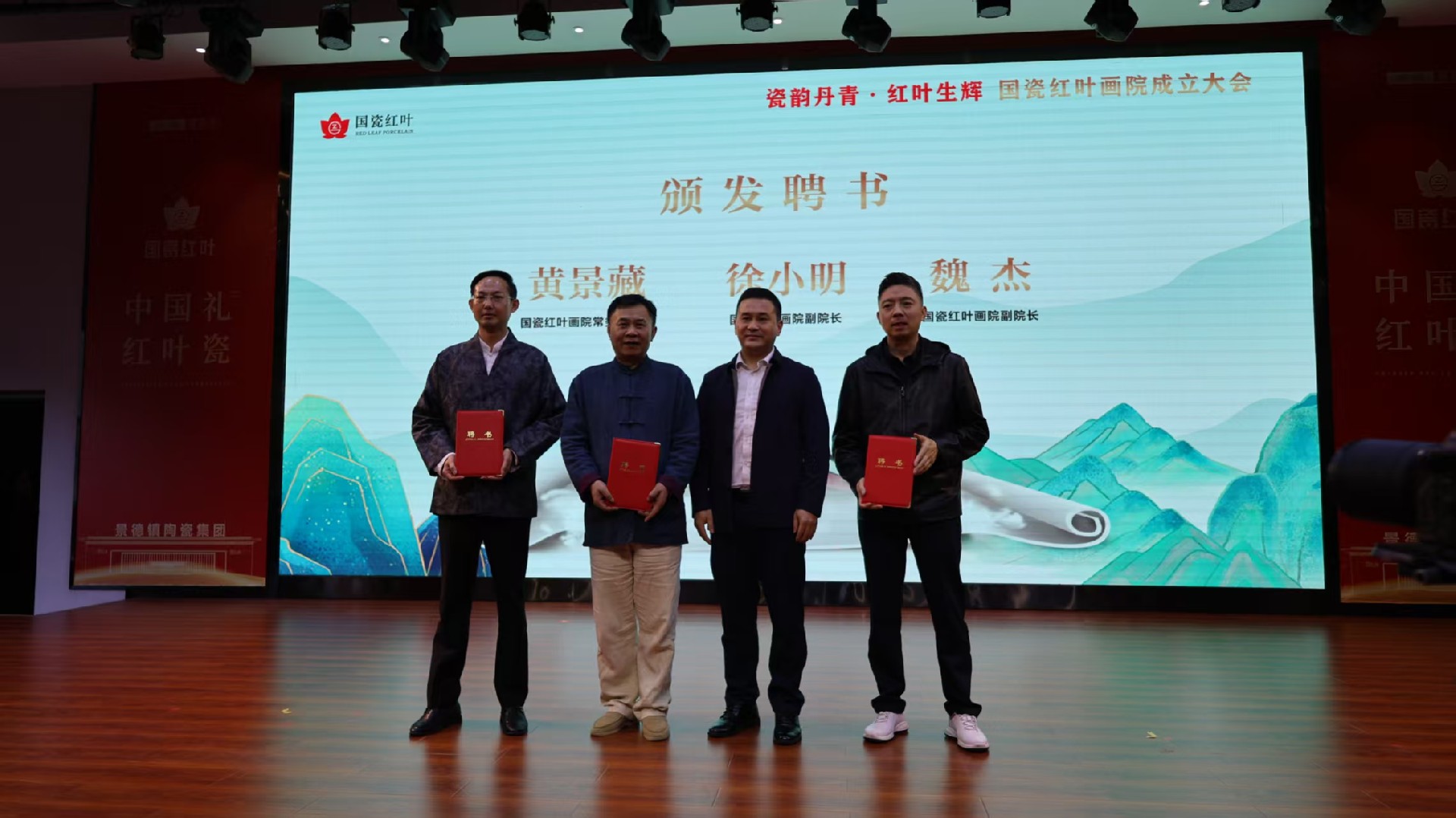 瓷都盛會話傳承,紅葉溢彩繪新篇。11月9日上午,景德鎮(zhèn)陶瓷集團旗下國瓷紅葉畫院成立大會在紅葉陶瓷國瓷館隆重舉行。江西省輕工業(yè)聯(lián)合會理事長鄭正春,景德鎮(zhèn)市政府黨組成員、昌南新區(qū)黨工委書記余立新,景德鎮(zhèn)陶瓷研究院黨組書記、院長吳浪,江西陶瓷工藝美院黨委委員、副院長朱輝球,江西省輕工業(yè)聯(lián)合會秘書長崔軍,景德鎮(zhèn)陶瓷協(xié)會秘書長陳華清,中國工藝美術大師劉偉,中國工藝美術大師黃景藏,景德鎮(zhèn)陶瓷大學設計藝術學院院長余劍峰,景德鎮(zhèn)學院陶瓷美術與設計藝術學院黨委書記陳后輝,市工信局副局長朱成,市昌南新區(qū)黨工委委員、管委會副主任張英,景德鎮(zhèn)新聞傳媒集團副總經(jīng)理丁添,北京天壇文化產(chǎn)業(yè)有限公司CEO王莎莎,嗶哩嗶哩Vsinger業(yè)務部—市場總監(jiān)劉冰潔及景德鎮(zhèn)陶瓷集團領導班子等領導和嘉賓出席大會。