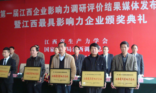 為了挖掘全省各行業(yè)在建設(shè)富裕和諧秀美江西中涌現(xiàn)出來的標(biāo)桿性企業(yè),打造行業(yè)形象典范,江西省生產(chǎn)力學(xué)會、國家統(tǒng)計局江西調(diào)查總隊聯(lián)合開展了第一屆江西企業(yè)影響力調(diào)研評價活動。并于2012年3月21日在江西南昌舉行了調(diào)研評價結(jié)果媒體發(fā)布會暨江西最具影響力企業(yè)頒獎典禮。