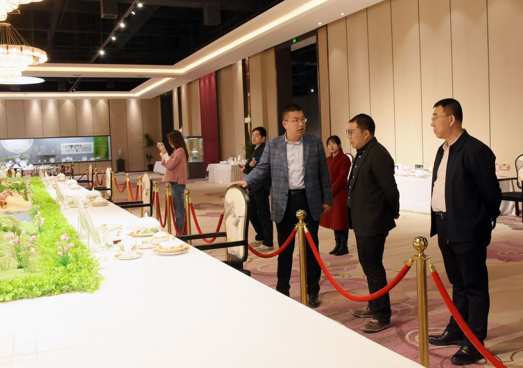 在國(guó)瓷館參觀期間,邢浩向調(diào)研組一行簡(jiǎn)要介紹了集團(tuán)公司發(fā)展歷程。在陪同大家品鑒“紅葉陶瓷”精品時(shí),邢浩一邊講解陶瓷先進(jìn)生產(chǎn)工藝,一邊講述一套套有關(guān)“國(guó)瓷”的故事。