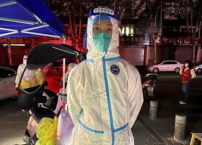 在這次疫情中,他積極踴躍參與志愿者服務(wù),所在社區(qū)7各小區(qū),其中5個(gè)封禁,只剩下2個(gè)小區(qū)的黨員志愿者能正常開展志愿服務(wù)。他被社區(qū)派到負(fù)責(zé)社區(qū)高風(fēng)險(xiǎn)封控區(qū)上門核酸工作,每天深夜12點(diǎn)開始就與醫(yī)護(hù)人員一起上門服務(wù)做核酸。他主動(dòng)負(fù)責(zé)核酸檢測(cè)的信息采集工作,認(rèn)真做好每個(gè)人員的信息登記,確保不出差錯(cuò),至始至終堅(jiān)守在檢測(cè)一線,用擔(dān)當(dāng)和責(zé)任為居民筑牢疫情防控安全屏障,以實(shí)際行動(dòng)挑起時(shí)代賦予的重任。